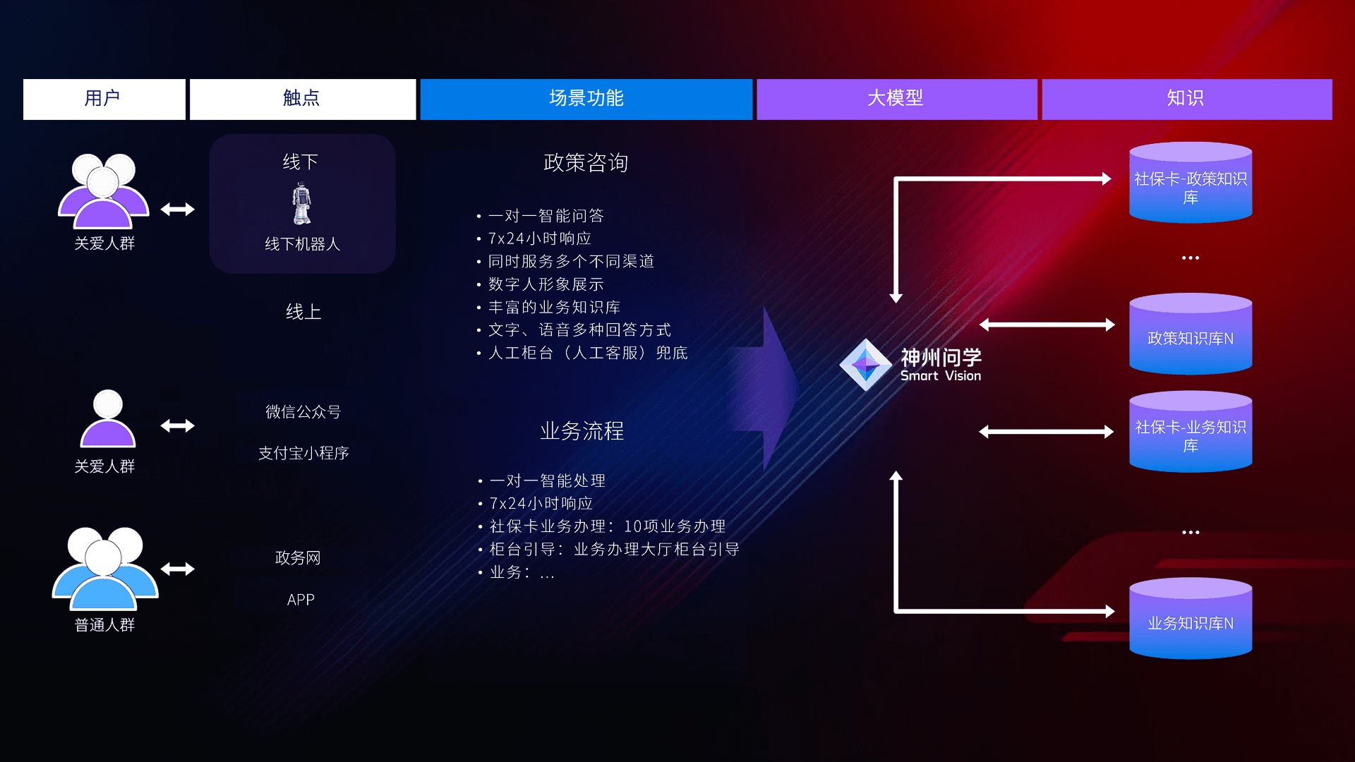 • 线上线下全覆盖:线上提供微信公众号、、支付宝小程序、、、政务网、、、、app多种渠道,,与线下机器人形成完整服务体系。。。。